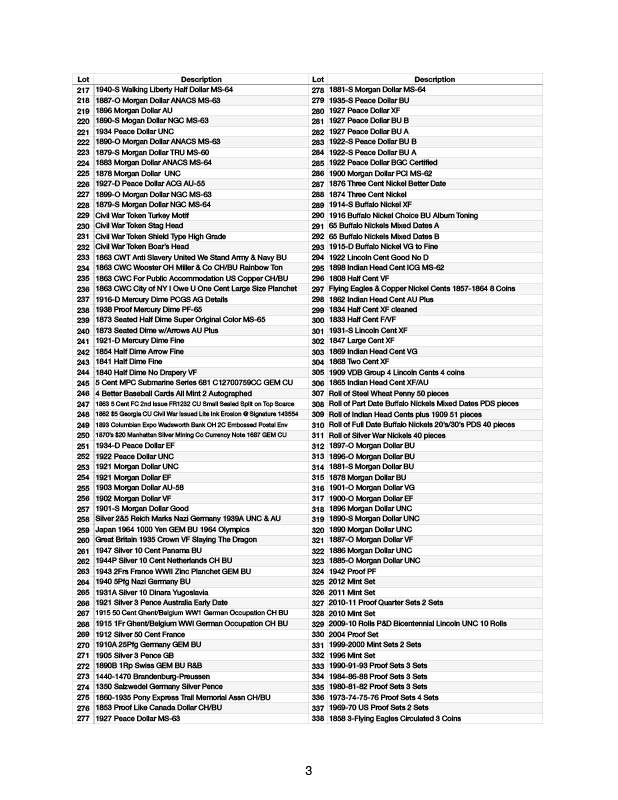 SUPER LARGE COIN & CURRENCY AUCTION